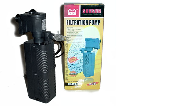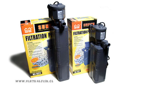Filtro interno sumergible con motor, gran capacidad para material filtrante.